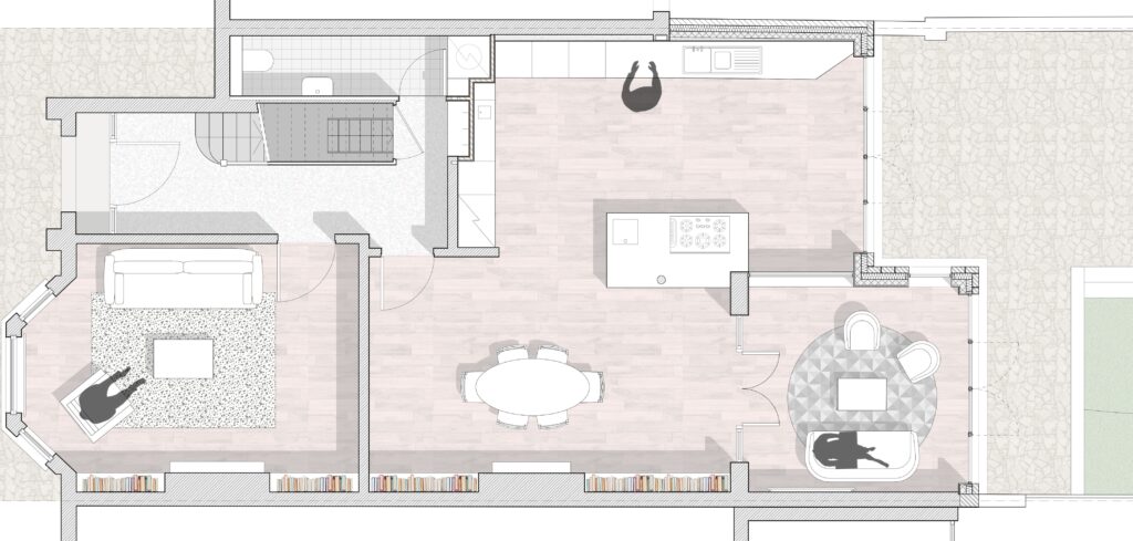 Planning consent for the proposed additions to the property (within a conservation area) was received in April 2020. Works commenced shortly after and it was great to see the design come to life, creating great view connections into the garden with much improved internal flows.